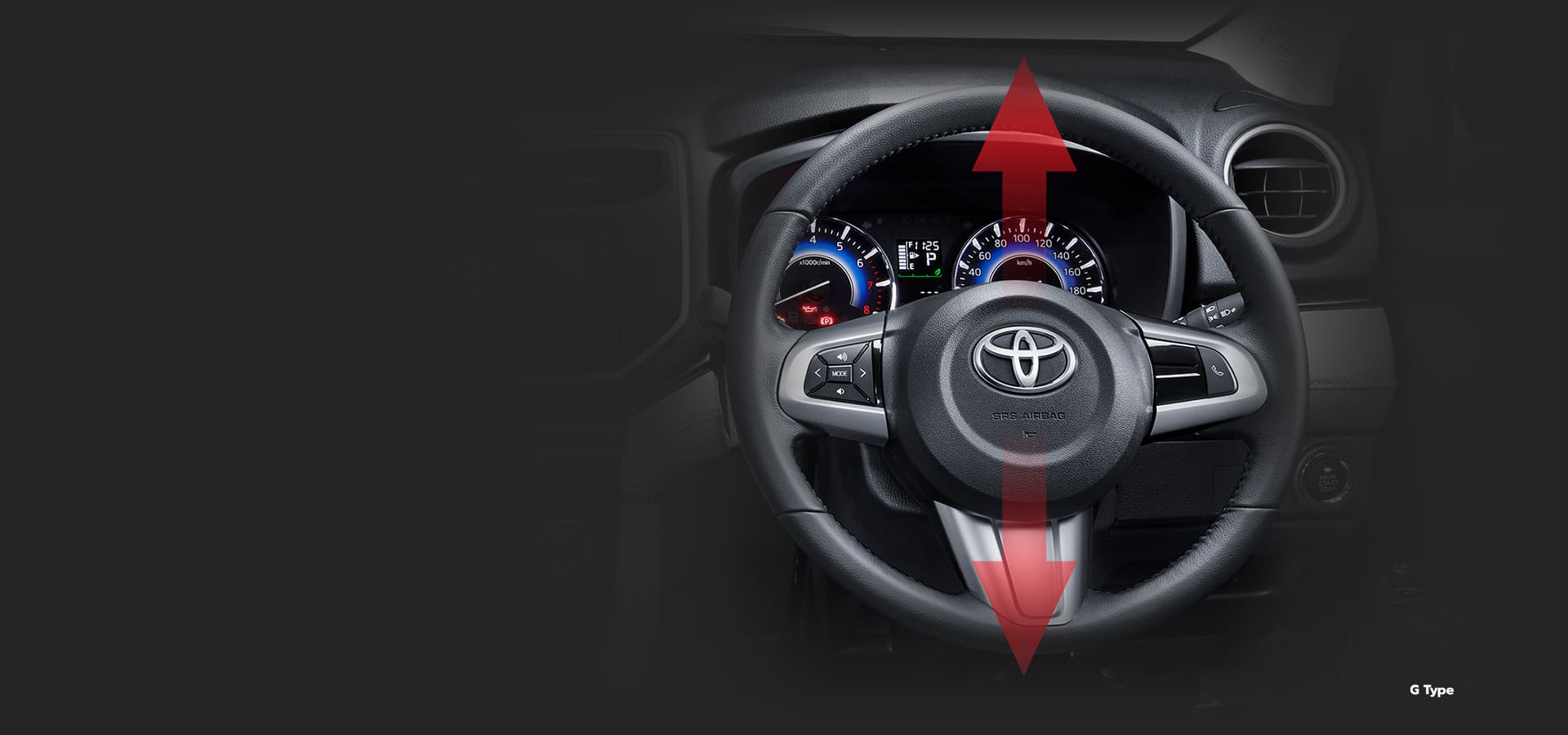 Setir mobil ini bisa diseting sedemikian rupa supaya bisa tetap nyaman digunakan sepanjang perjalanan.Tampilan dalam Toyota All New Rush mempertahankan gaya modern yang terkini tanpa kesan berlebihan.Untuk dashboard telah ada design terbaru dengan penambahan Head Unit dengan fitur Rear Parking Camera, Auto A/C with Digital Display, Stunning Combinator Meter dalam lampu indikator mobil, erta 8 Surround Sound Speaker yang mengeluarkan suara audio yang berkelas.